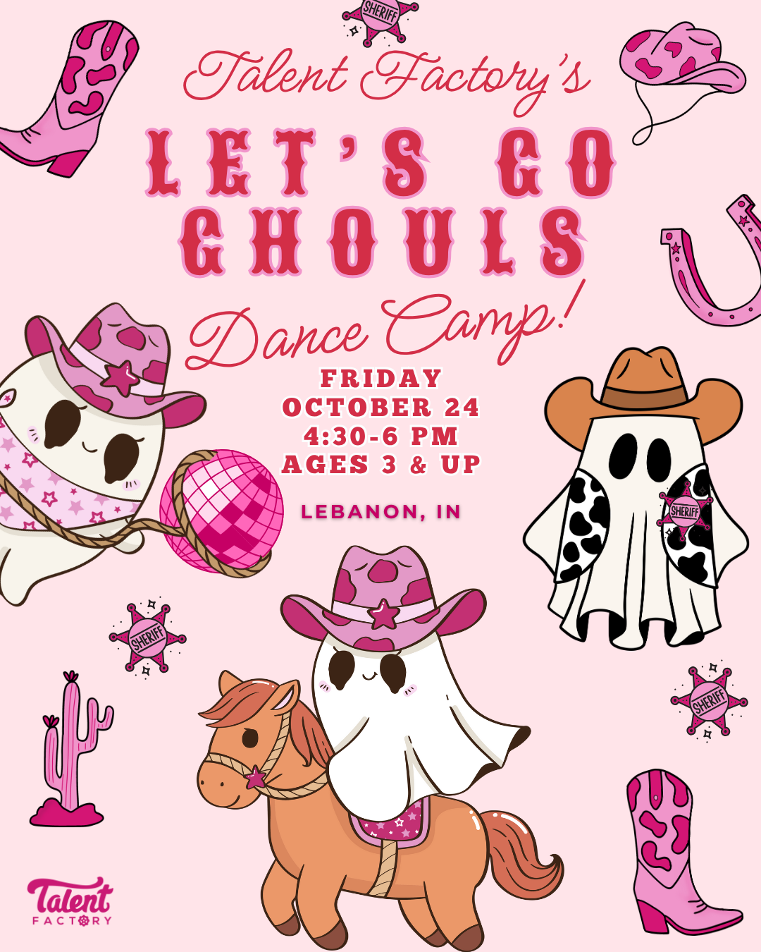 Calling all ghoulie girls & goblin gents! It’s spooky season and Talent Factory is entering our Ghoulhood Era! 👻 Sneak a peek and save the date for our most eerie-sistible camp of the year! Join us for a spooky-fun time! Get ready to groove to your favorite Halloween tunes, make new friends, make your way through our spooktacular obstacle course, and make a creepy craft!