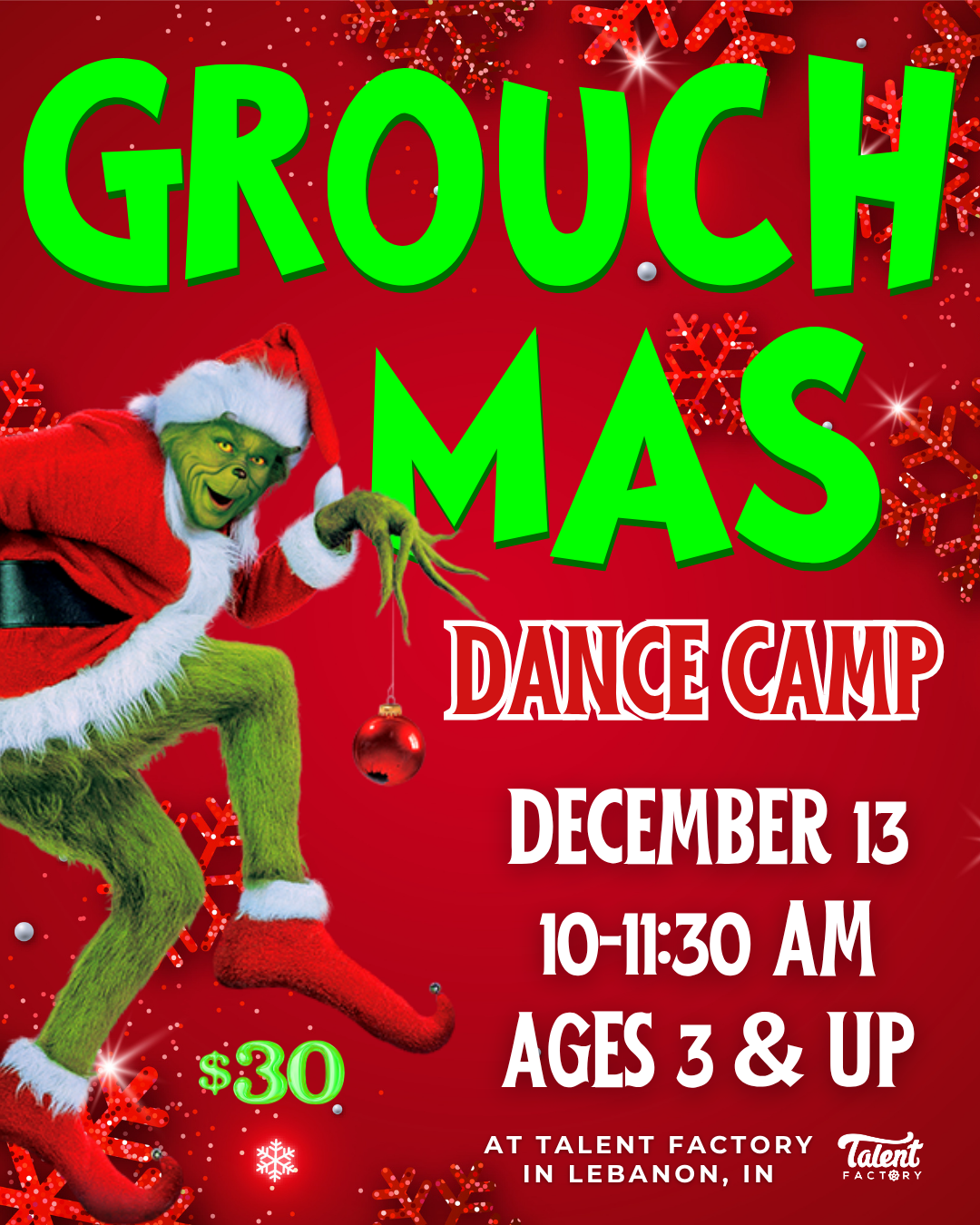 What To Wear: Dancers should wear their favorite Grinch inspired or green & red attire! (Dance shoes or non-slip socks, NO OUTSIDE SHOES) We love seeing our dancers go full out for our monthly themes!