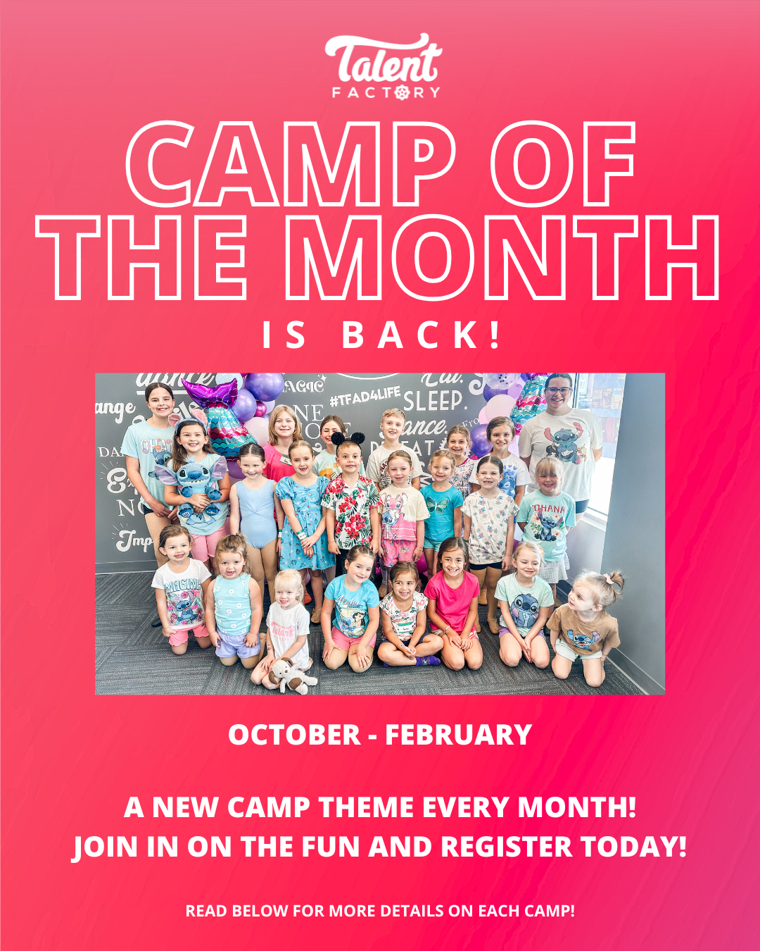Camp of the Month Program is HERE! Starting in October, we’re offering one fun-filled camp every month until February!